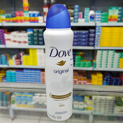 Agite bem antes de usar. Aplique um jato de dois segundos de Dove Original diretamente em cada axila, a uma distância de 15cm da pele (não menos do que isso).
