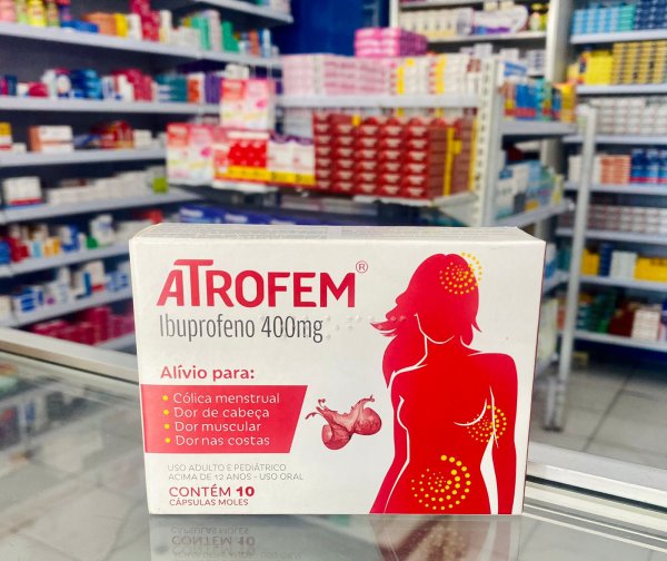 Atrofem contém ibuprofeno, que possui atividade analgésica, antitérmica e anti-inflamatória. Atrofem traz o ibuprofeno na inovadora cápsula mole (cápsula líquida), onde o analgésico encontra-se na forma líquida no interior de uma cápsula mole, proporcionando início de ação mais rápido.