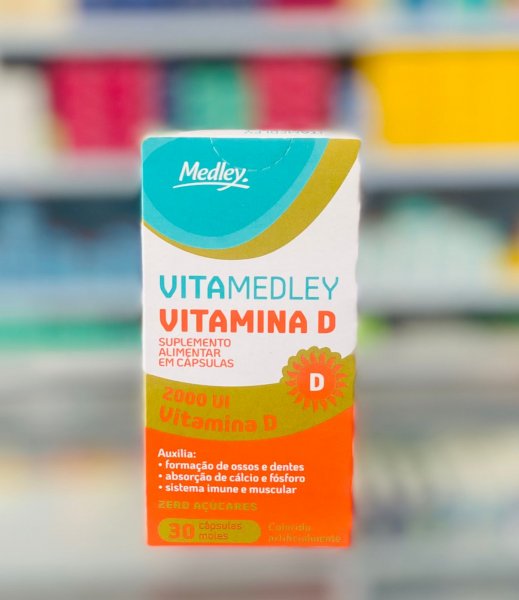 VitaMedley Vitamina D 2000ui auxilia na formação dos ossos e dentes, absorção de cálcio e fósforo no sistema imune e muscular, para você viver uma vida vitaminada, com disposição para aproveitar o melhor de cada momento.
