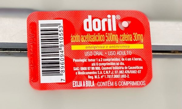 Número de lote, datas de fabricação e validade: vide embalagem. Não use medicamento com prazo de validade vencido. Para sua segurança, mantenha o medicamento na embalagem original. Doril é um comprimido circular, biconvexo, liso e rosa. Antes de usar observe o aspecto do medicamento. Caso você observe alguma mudança no aspecto do medicamento que ainda esteja no prazo de validade, consulte o médico ou o farmacêutico para saber se poderá utilizá-lo. Todo medicamento deve ser mantido fora do alcance das crianças.