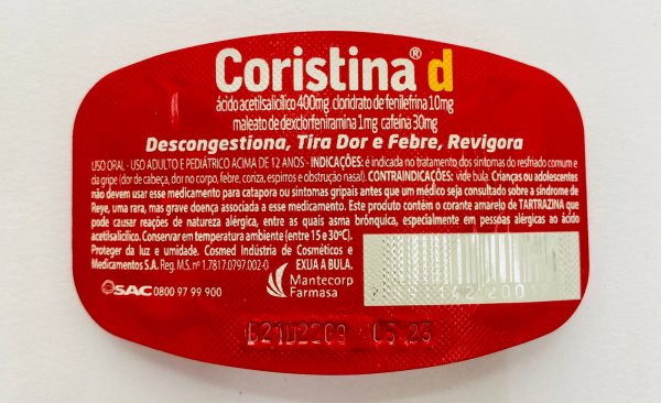 Coristina® D é um tratamento sintomático e deve ser utilizado apenas enquanto durarem os sintomas do resfriado comum ou da gripe.