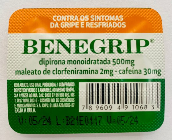É contraindicado o uso simultâneo de Benegrip® e álcool, e com medicamentos para dores de grande intensidade (morfina, codeína, meperidina).