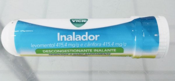 Inalador Vick® consiste em um feltro de celulose impregnado com 1,0 mL de solução do fármaco contido num suporte de plástico com uma tampa de rosca. Mantenha bem fechado quando não estiver em uso.