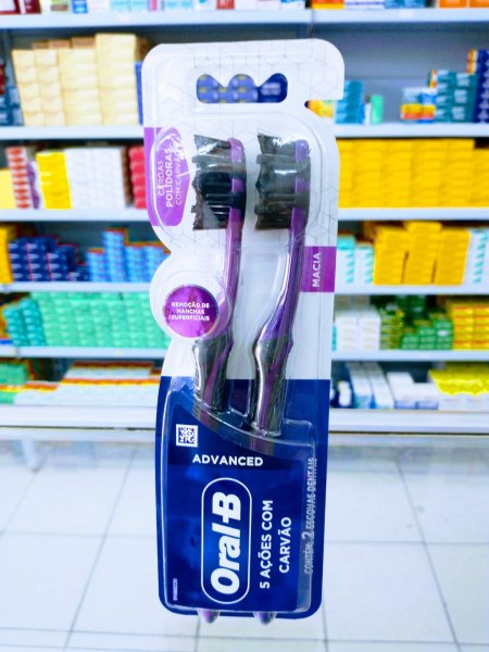 Escova dental Oral-B Advanced Carvão 02 escovas macia com cerdas polidoras