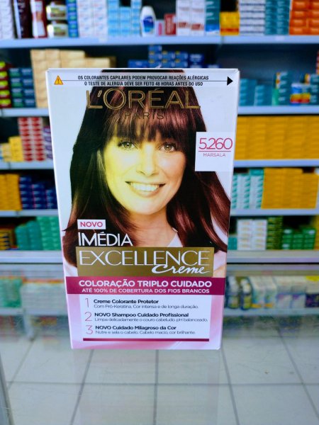Voltar para a página inicial   >   Cuidados para os cabelos   >   Coloração Lóreal Imédia Excellence 5.260 Marsala (tinta para cabelo)