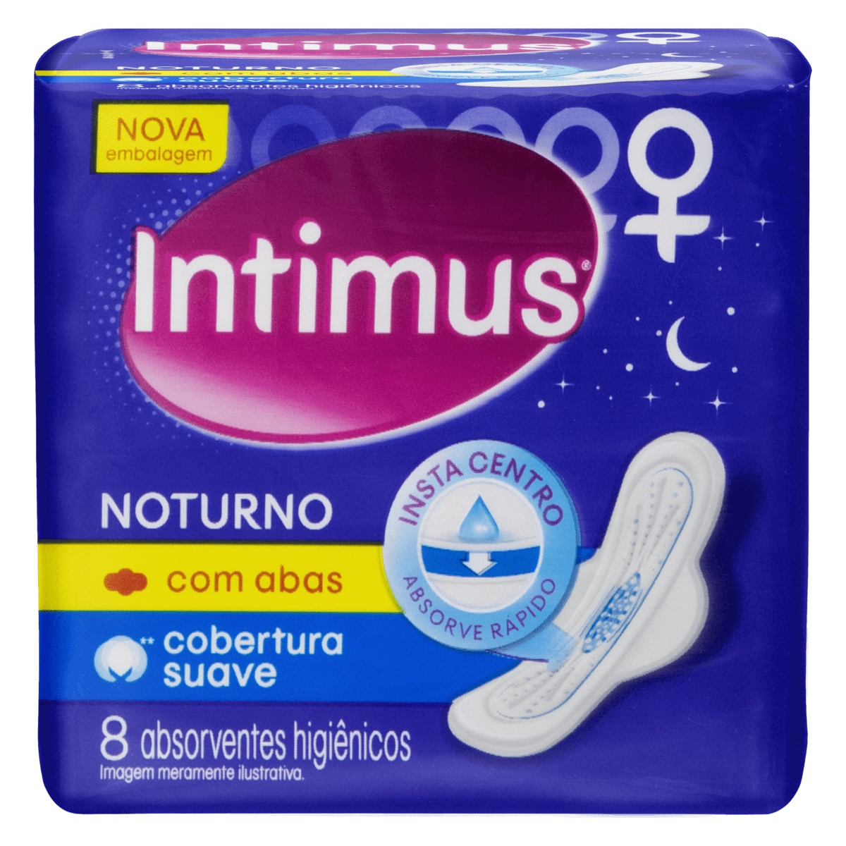 Voltar para a página inicial   >   Cuidados Intimos   >   Absorvente Intimus Gel Noturno Suave com Abas 8 Unidades